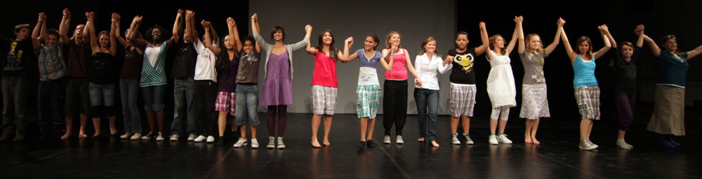 Teilnehmer/innen: 30 Kinder und Jugendliche, 6.-10. Jahrgangsstufe, aus 13 verschiedenen Herkunftsländern, Gläubige der Weltreligionen: Christentum, Othodoxes Christentum, Islam, Buddhismus, Judentum sowie Schüler, die sich als "Atheisten" verstehen und Indianer, die an Naturgötter glauben. Wir recherchieren mit der Filmkamera in kulturellen Gemeinschaften in München und in Dnepropetrowsk (Ukraine), in denen die teilnehmenden Jugendlichen aktiv sind und fragen uns: "Wer bin ich? Woran glaube ich? Wo komme ich her, wo gehe ich hin? Für welche Kultur stehe ich?" Aus den Begegnungen, Ritualen, Fragen und Kontroversen entwickeln wir interkulturelle Szenen und Geschichten für unsere neue Inszenierung szenische, tänzerische und filmische Schlaglichter auf Freiheitsrdrang, Lebensumstände, Träume und Traumata einer jungen Generation. In die Inszenierung eingebettet sind Filmaufnahmen aus der Workshop-Aufführung und Kulturrecherche zusammen mit Schülerinnen und Schülern aus der jüdischen Schule in Dnepropetrovsk. Das Projekt „Glaubst Du? Wer bin ich?“ ist Teil einer neuen Entwicklung und Öffnung der Schule für interkulturelle und künstlerische Bildungsarbeit. |