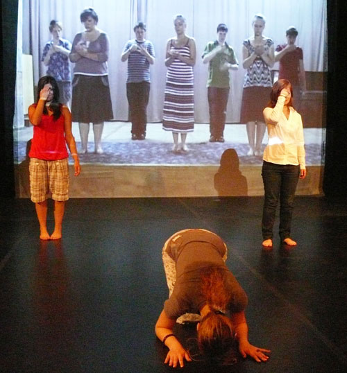 | Choreografien, Filme und Theaterszenen zu kulturellen Ritualen, die Halt vermitteln, aber ebenso freiheitliche Lebensführung einschränken können. In projezierten Filmszenen und live auf der Bühne des Theaters „schwere reiter“, München, stellen sich die Jugendlichen der Herausforderung von Aids und Empfängnisverhütung, haben Suizidgedanken und fühlen die rettende Kraft der Liebe. |
