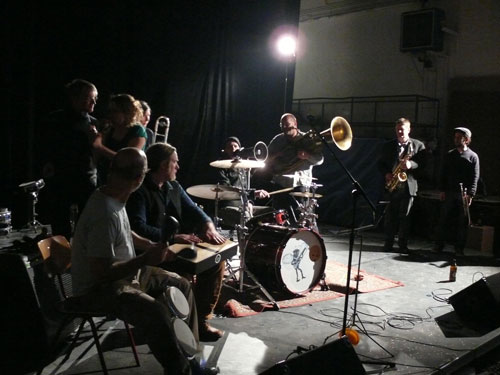 | mucca31: Express Brass Band | Tanzstudio (z.Zt. gesperrt weben Brandschutz): Ensemble Fisch und Plastik |